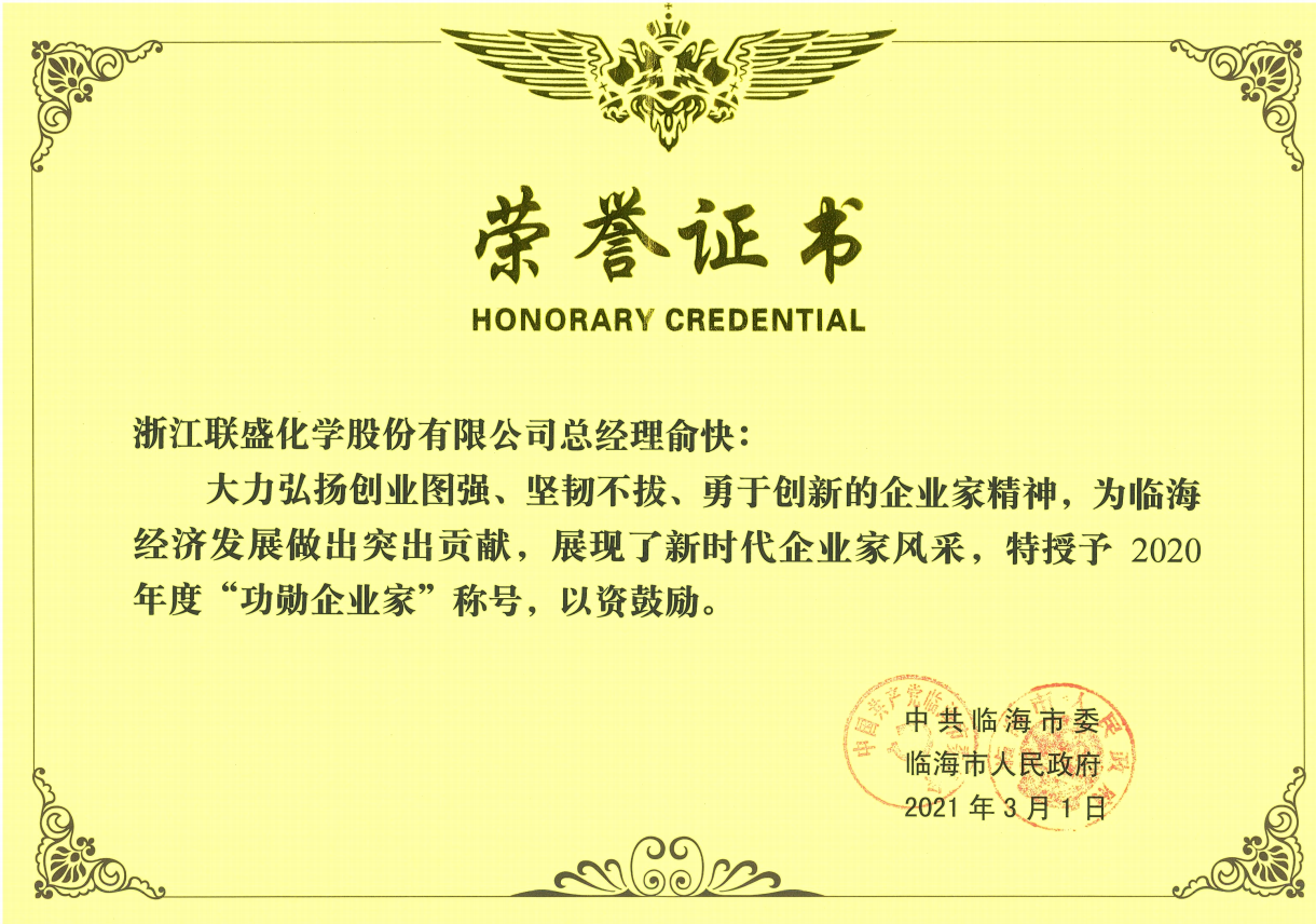 市委副書(shū)記蔡建軍通報(bào)了全市各類先進(jìn)名單。浙江聯(lián)盛化學(xué)股份有限公司總經(jīng)理俞快榮獲“功勛企業(yè)家”榮譽(yù)稱號(hào),公司獲得五十強(qiáng)工業(yè)企業(yè)榮譽(yù),研發(fā)中心獲評(píng)為浙江“省級(jí)企業(yè)技術(shù)中心”。